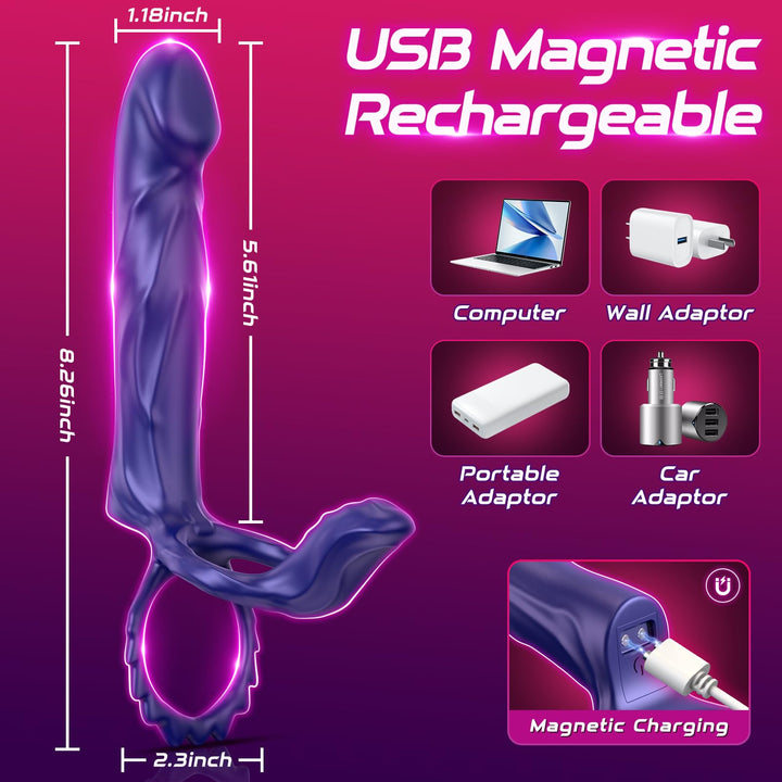 Features a realistic penis shape and 2 vibrators for simultaneous stimulation. The penis and ball ring provide gentle contractions to enhance erections and prolong pleasure during intimate sessions.